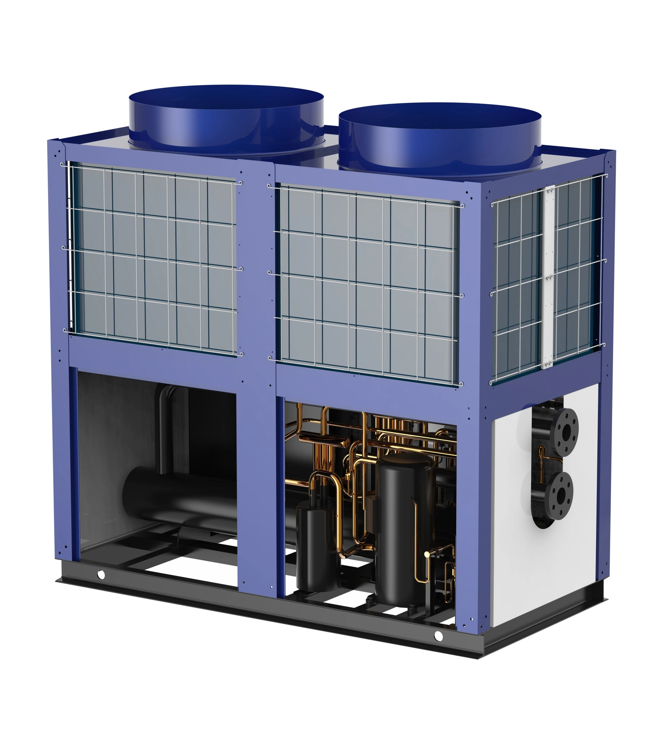 6、机组的出水温度高达60℃,实现高温度的热水输出
