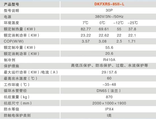 注:1、以上参数为标准名义工况:干球温度-12℃, 湿球温度-14℃ ,进水温度35℃,出水温度41 。