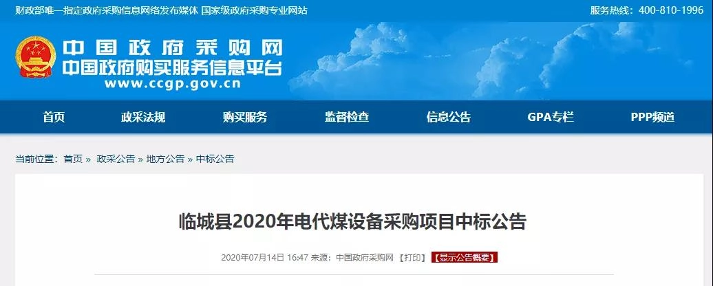 真心公司又双叒……中标临城县2020年电代煤