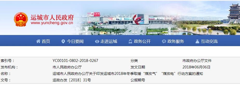 运城市2018年冬季取暖“煤改气”“煤改电”行 动 方 案