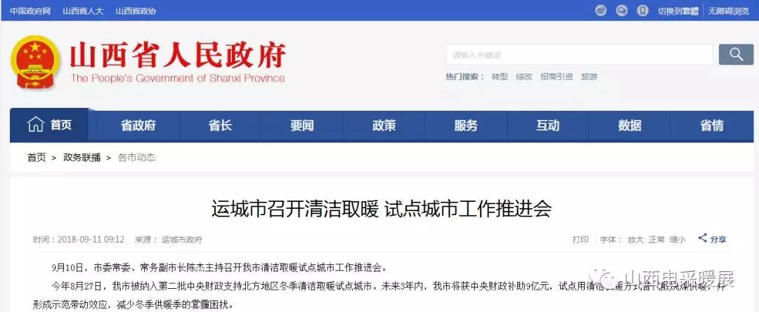 山西运城市将获中央财政补助9亿元,助推“煤改清洁能源”
