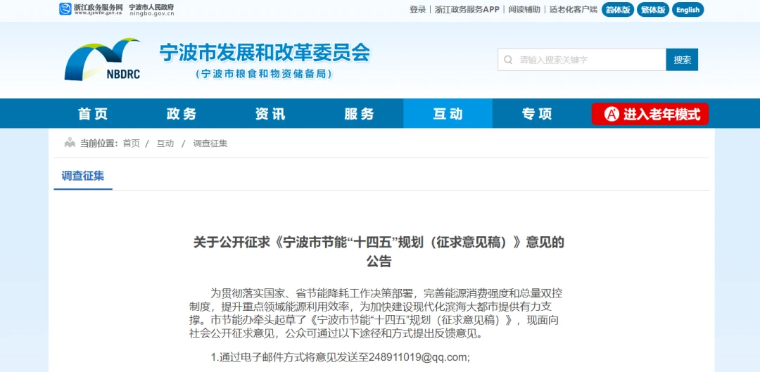 宁波市发展和改革委员会发布公开征求《宁波市节能“十四五”规划(征求意见稿)》意见的公告。