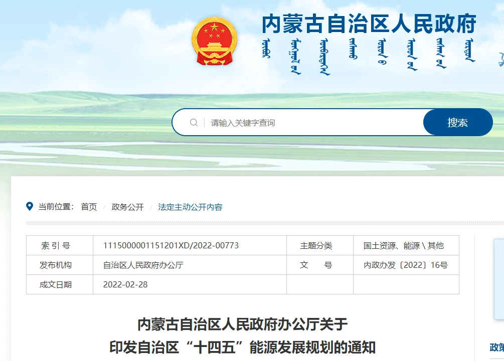 近日,内蒙古自治区人民政府发布《内蒙古自治区人民政府办公厅关于印发自治区“十四五”能源发展规划的通知》,《规划》第八章指出:实施再电气化工程,倡导消费转型新模式,在包头稀土高新区、铝业园区,鄂尔多斯达拉特、鄂托克经济开发区开展工业电能替代示范,推进工业电锅炉、电窑炉、热泵应用,推广新增热负荷电能替代。稳步推进清洁电取暖。坚持“宜电则电、宜煤则煤、宜热则热”原则,在热力管网无法达到的老旧城区、城乡结合部或生态环保要求较高区域,推广应用电锅炉、热泵、分散式电采暖。开展绿色社区建设行动,在机关、学校、医院、博物馆等大型公共建筑,推广应用电锅炉、热泵、太阳能集中供热。在呼包鄂推进清洁供暖示范城市建设,在内蒙古东部地区加快探索高比例清洁能源电供暖示范。在农村牧区推广电采暖替代,打造一批清洁取暖示范项目。到2025年,新增电供暖面积超过2000万平方米。