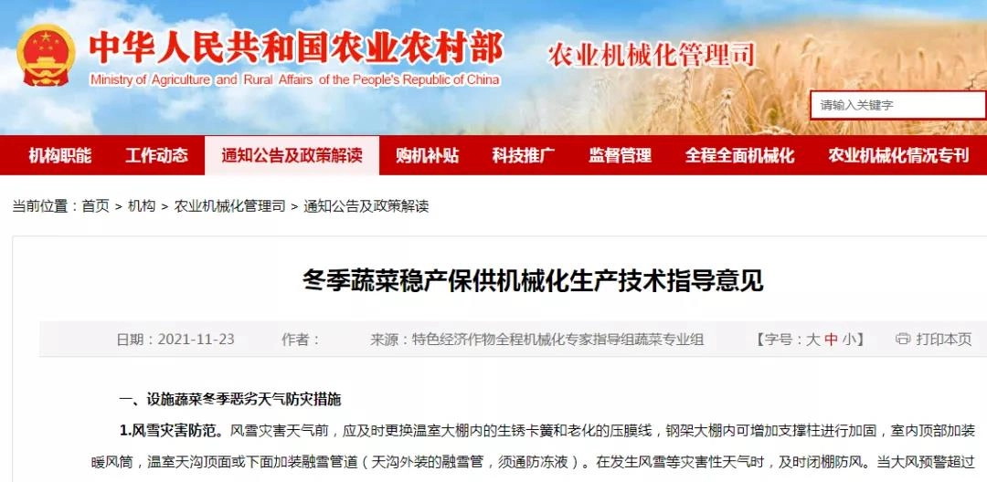 近期,农业农村部官网发布《冬季蔬菜稳产保供机械化生产技术指导意见》,《指导意见》由农业农村部特色经济作物全程机械化专家指导组蔬菜专业组、农业农村部农业机械化总站提出。《指导意见》明确冬季蔬菜稳产保供根据条件选配热泵等环境调控设施设备。