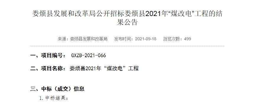 真心公司再次中标娄烦县2021年“煤改电”工程