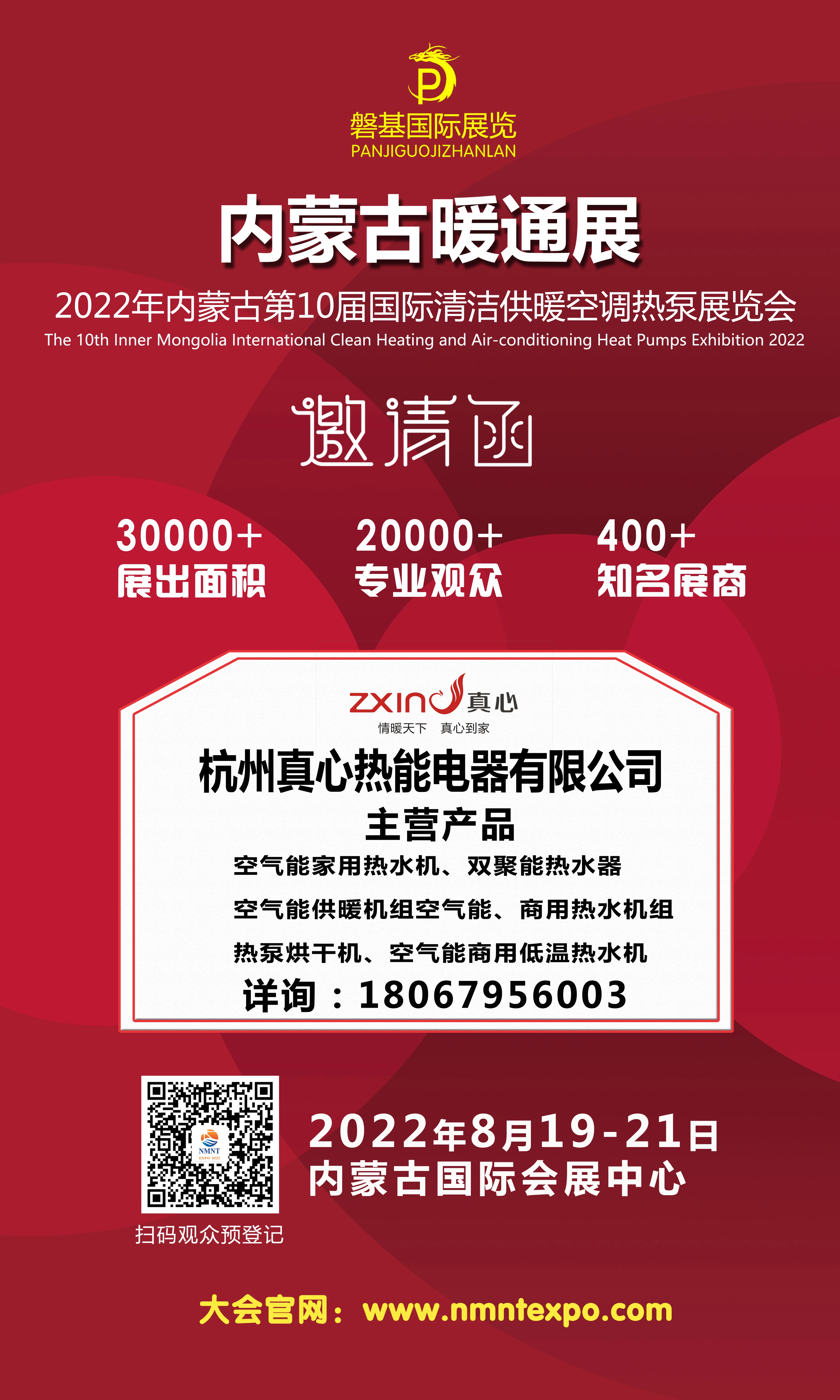 2022年8月19日-21日,T203-2展位,真心公司将携多款优质热泵产品及更加节能的应用方案亮相此次展会,向来自世界各地的参展商,展示先进的暖通及舒适节能热泵家居产品、技术和系统解决方案。