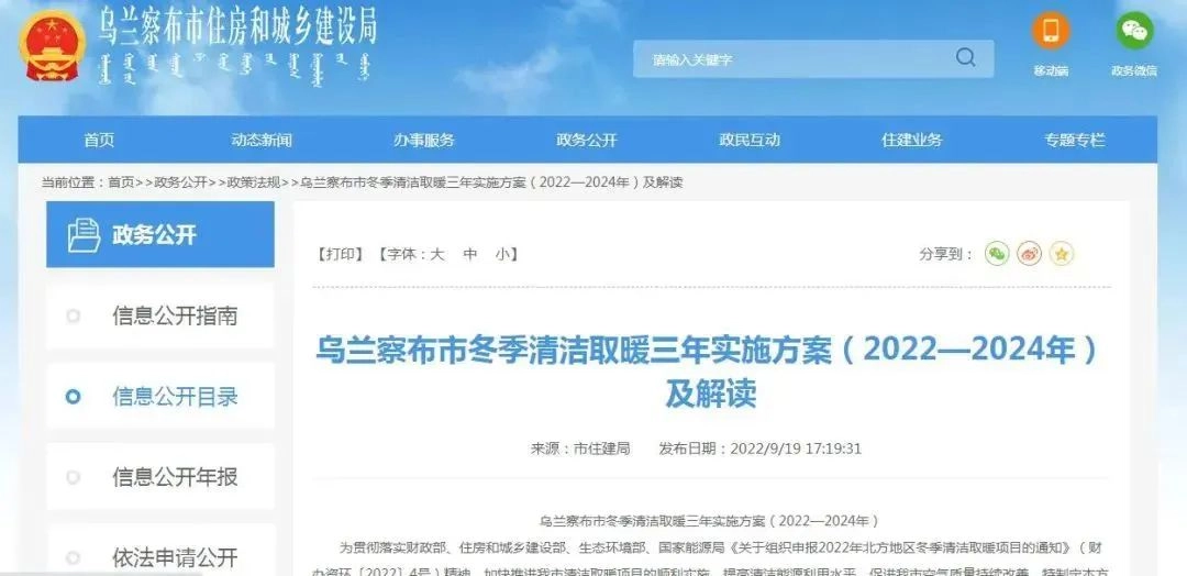 乌兰察布市冬季清洁取暖三年实施方案(2022—2024年)