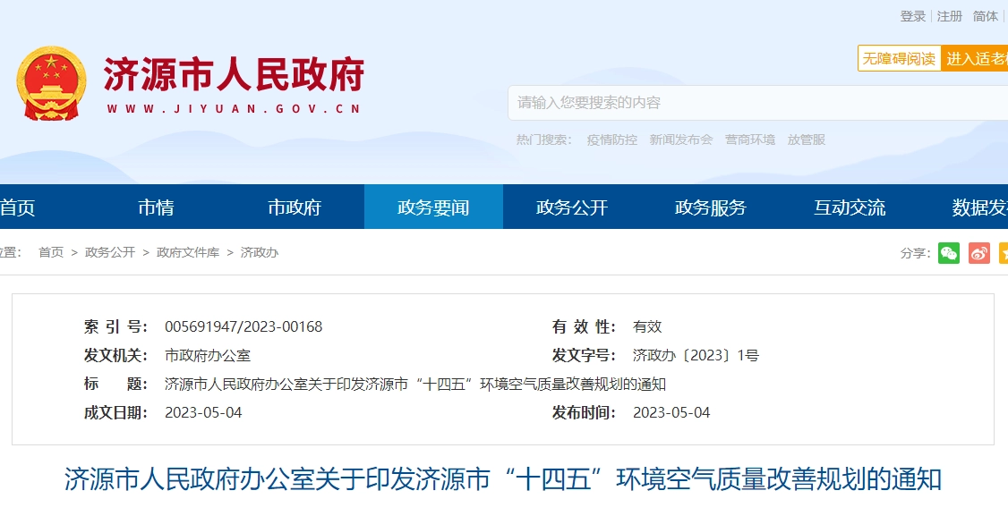 近日,济源市人民政府发布《济源市人民政府办公室关于印发济源市“十四五”环境空气质量改善规划的通知》,规划重点任务中提到,大力推动清洁供暖建设,加快供热设施建设,提升供暖保障能力。重点推进沁北电厂集中供热工程。到2025年,城市集中供热覆盖率达到90%以上。对集中供热规划外的区域,鼓励推广电取热、空气源热泵等多种清洁供暖方式,积极推进屋顶分布式光伏与分户式清洁取暖有机融合。推动建筑节能改造,提高能源利用效率。开展清洁取暖“双替代”巩固提升行动,对完成“双替代”供暖改造的地区开展“回头看”,查漏补缺,落实电力和天然气供应保障和电价气价等优惠政策,建立长效机制。
