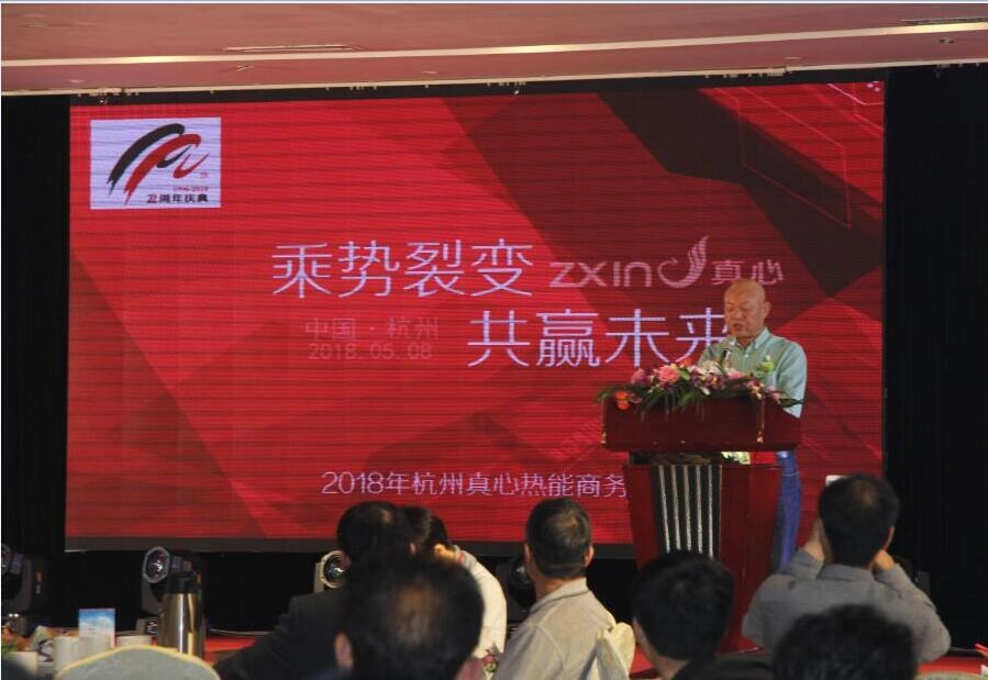 “乘势裂变 共赢未来”——2018杭州真心热能合伙人峰会在杭州临安交通皇冠大酒店胜利召开。出席本次会议的领导和嘉宾有:中国清洁能源技术应用联盟秘书长金继宗,中国节能协会热泵专业委员会副秘书长王水,中国节能协会热泵专业委员会常务副秘书长赵恒谊,浙江大学教授钟建立,绿商中国商学院院长赵广播,杭州真心热能电器有限公司董事长贺晓华、副总经理甄宗峰、销售总监夏仕鸿,慧聪热泵网杭州公司商务总监翁文平,以及数家媒体和真心热能全国各地的经销商等近300人参加了本次会议。