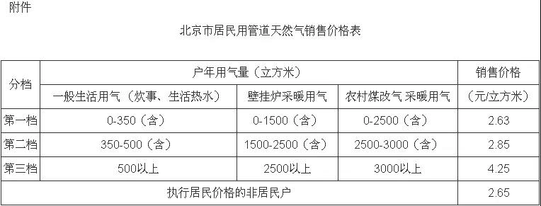 一、本市居民用管道天然气销售价格上调0.35元/立方米。调后价格具体见附件。