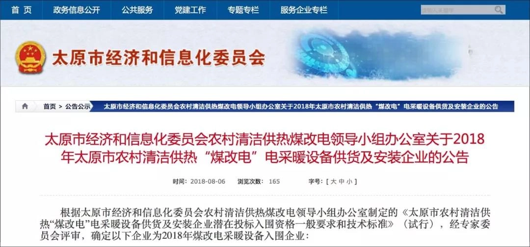 8月6日,根据太原市经济和信息化委员会农村清洁供热煤改电领导小组办公室制定的《太原市农村清洁供热“煤改电”电采暖设备供货及安装企业潜在投标入围资格一般要求和技术标准》(试行),经专家委员会评审,杭州真心热能电器有限公司凭借完善的企业资质实力与强大产品竞争力强势入围,再次用实力证明了真心公司在空气能行业的领导地位。