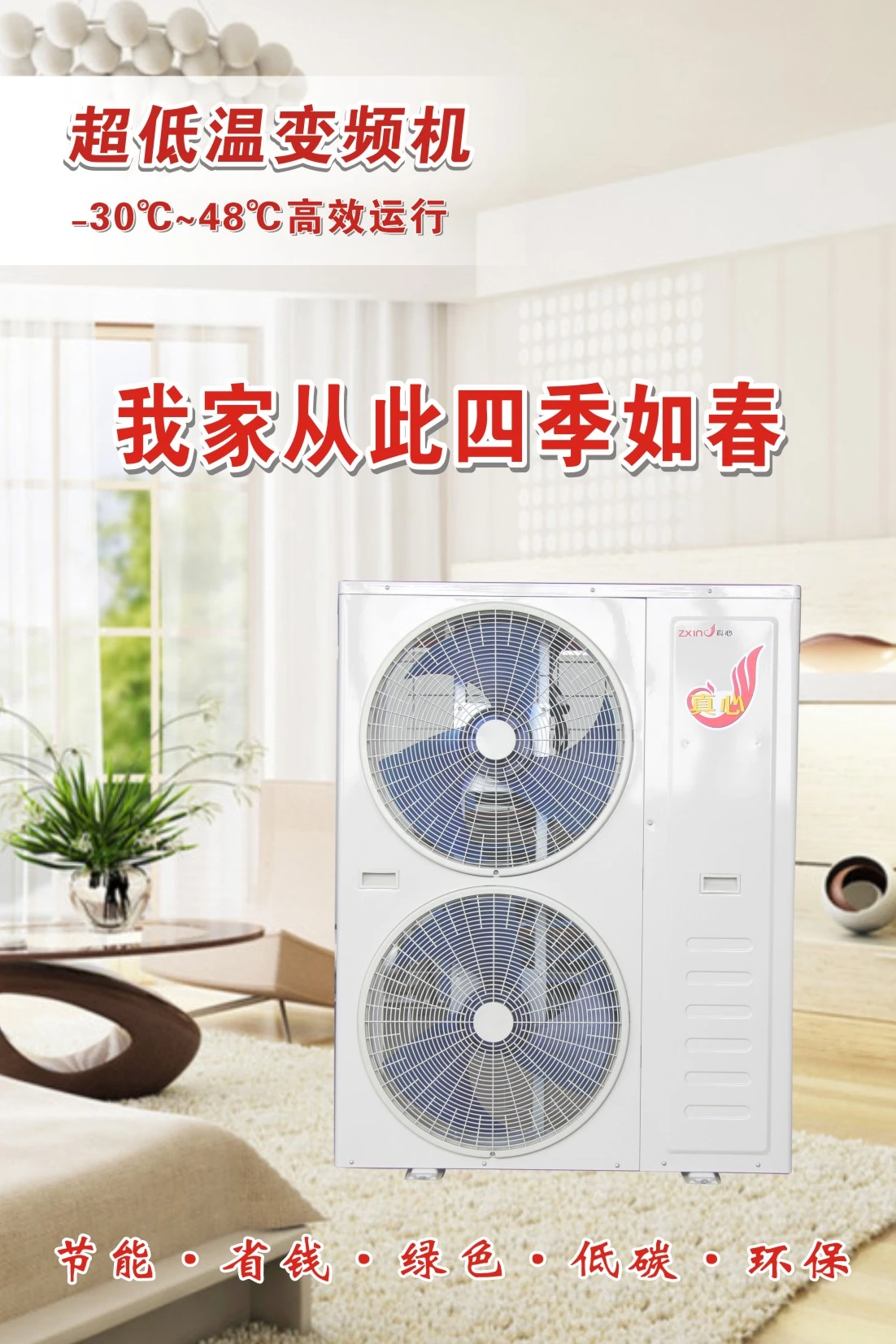 真心公司自创办以来,一直秉持“真心、共赢、创新、致远”的经营理念。并以科技创新为动力,以节能环保为使命,持续增强产品的研发力度。凭借卓越品质,创新技术和优质的服务在经过招标方层层评选考验中,在众多品牌中脱颖而出,一举夺得!此次煤改电项目采用真心公司超低温变频机机组系列。