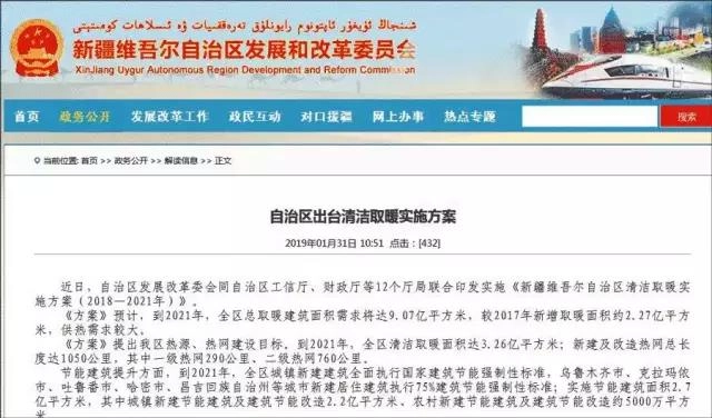 《新疆维吾尔自治区清洁取暖实施方案(2018—2021年)》
