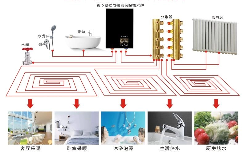 采用壁挂式安装,不占用空间,集热水与采暖为一体,智能控制,变频加热效率更高。