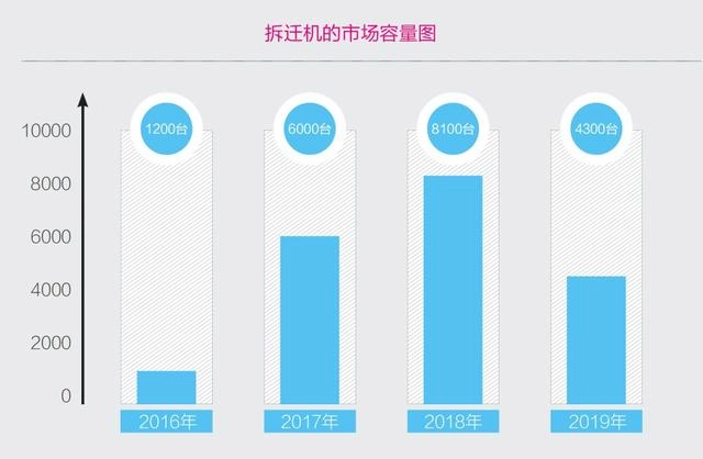 “前两年北京地区拆迁机的价格很低,三四千就能买到一台八九成新的设备,到了2018年开始逐渐上涨,最高的达到了八九千左右,还非常抢手。2018年拆迁机的安装量增大了很多,购买的渠道也变得多样化了,原来都是在二手市场购买,现在自己经常开车去北京拆迁地买,还可以通过微信朋友圈、抖音、快手、58同城等渠道购买,十分方便。”这是沧州经销商李总对2018年拆迁机市场的感受和看法。