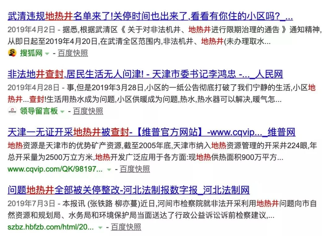 今年,河北出台史上最严厉政策,坚决打击违法开采。不符合地热规划违法开采的地热井,依法查处并提请政府全部关闭取缔;符合地热规划的地热井,到2020年10月31日,仍不能实现合法开采的,依法查处并提请政府关闭取缔。一时间,大量违法开采的地热井被取缔,但居民相应的供暖问题却没有及时解决。