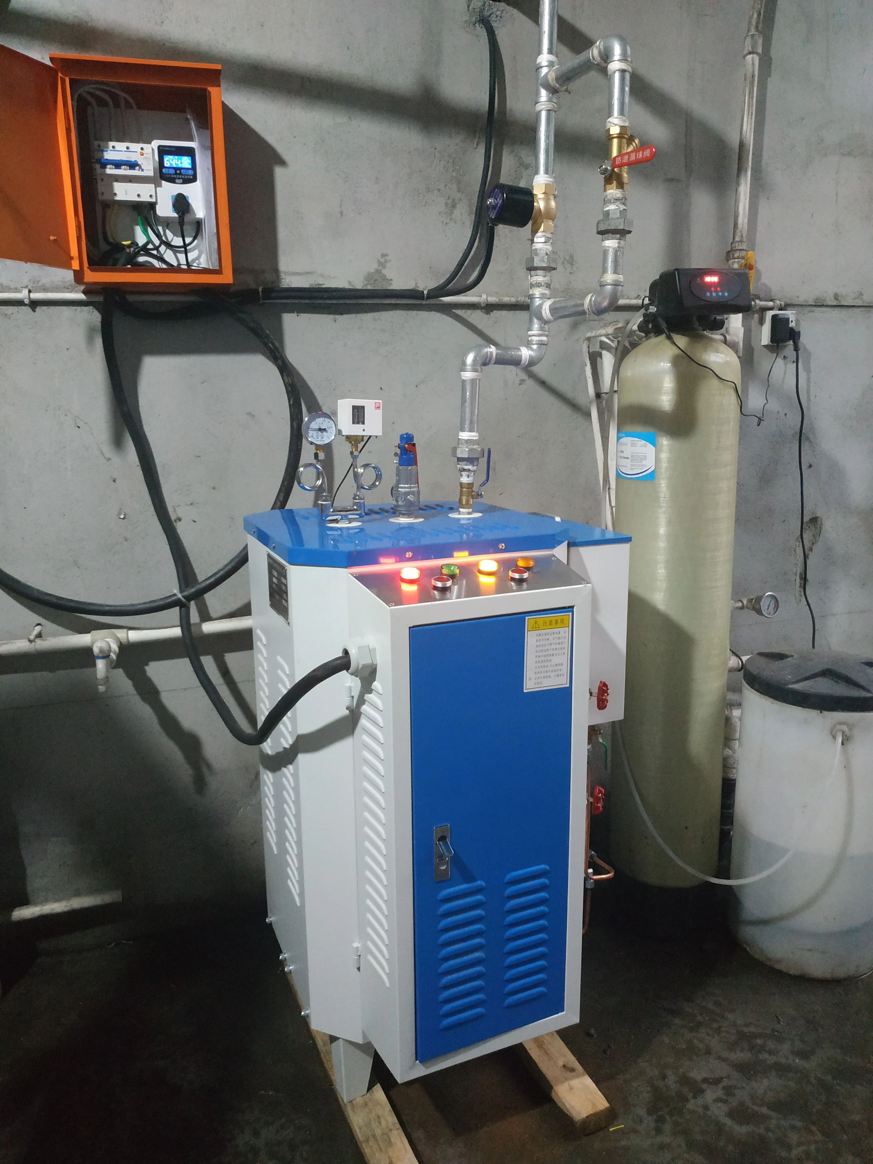 蒸汽发生器平时断电不用,烫猪前20分钟开启,8分钟即可出蒸汽,使用完毕关机断电。为降低水垢的危害,蒸汽发生器的用水采用了原来安装的一套阳树脂软化水设备供水。每天烫猪50头的话,运行时间约1小时15分钟;每天烫猪100头的话,运行时间约2小时30分钟。(注:蒸汽发生器容量在30升以下属于环保、安检部门免查范围,30升及以上的蒸汽发生器环保、安检部门要进行定期质量检查,需要办理相关使用手续。)