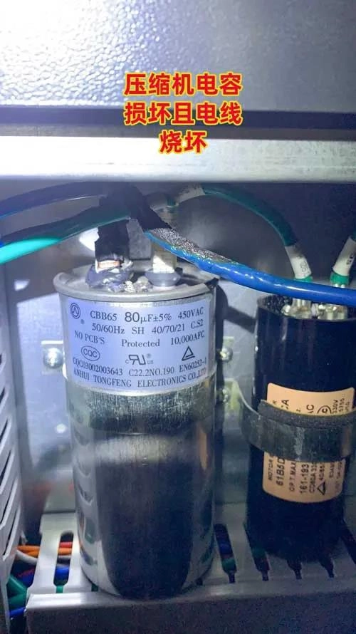 根据压缩机的电容参数显示,其要求是电压不超过450V,在农村地区正常也就220V的电压,即使电压不稳,也不可能出现高于450V的情况,由此可以判断电容的质量是不过关的。