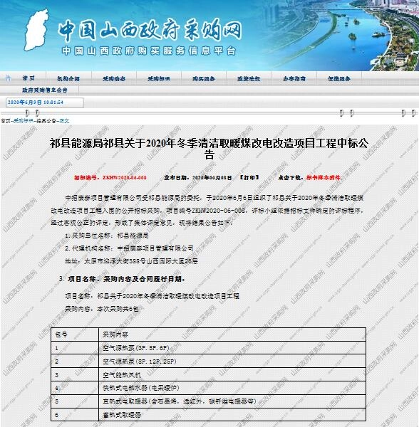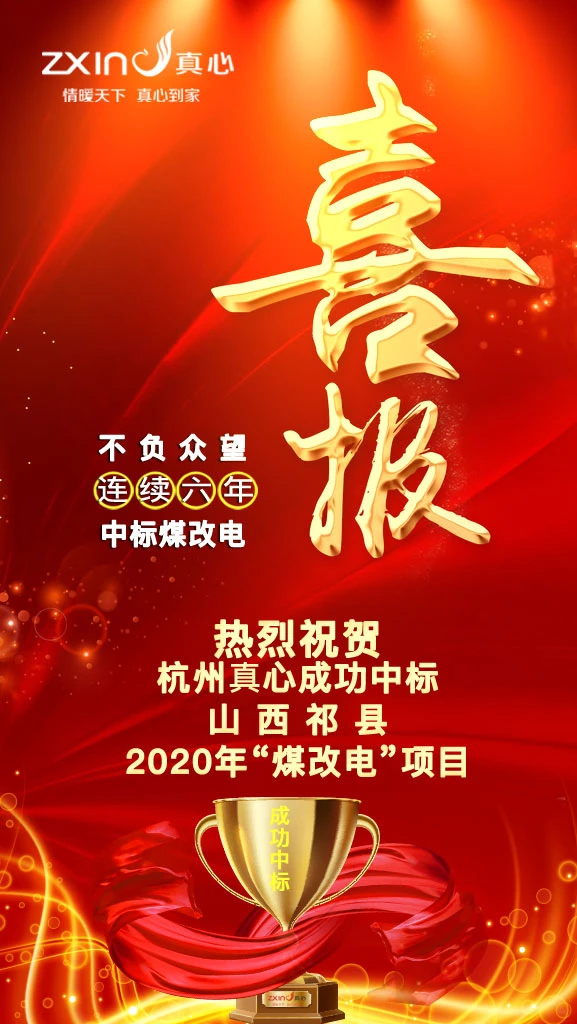 6月8日,中国山西政府采购网发布的《祁县能源局祁县关于2020年冬季清洁取暖煤改电改造项目工程中标公告》中,真心再次成功中标。