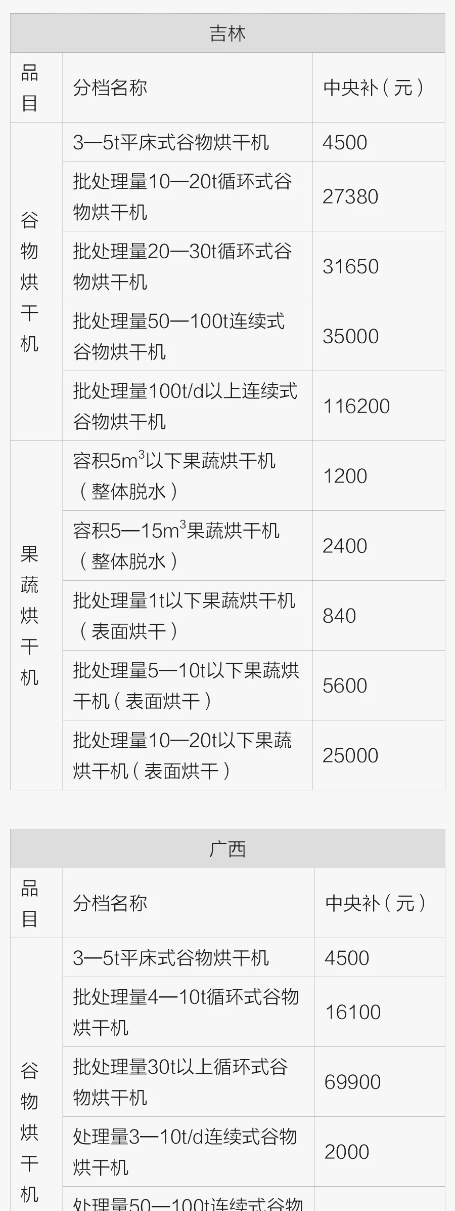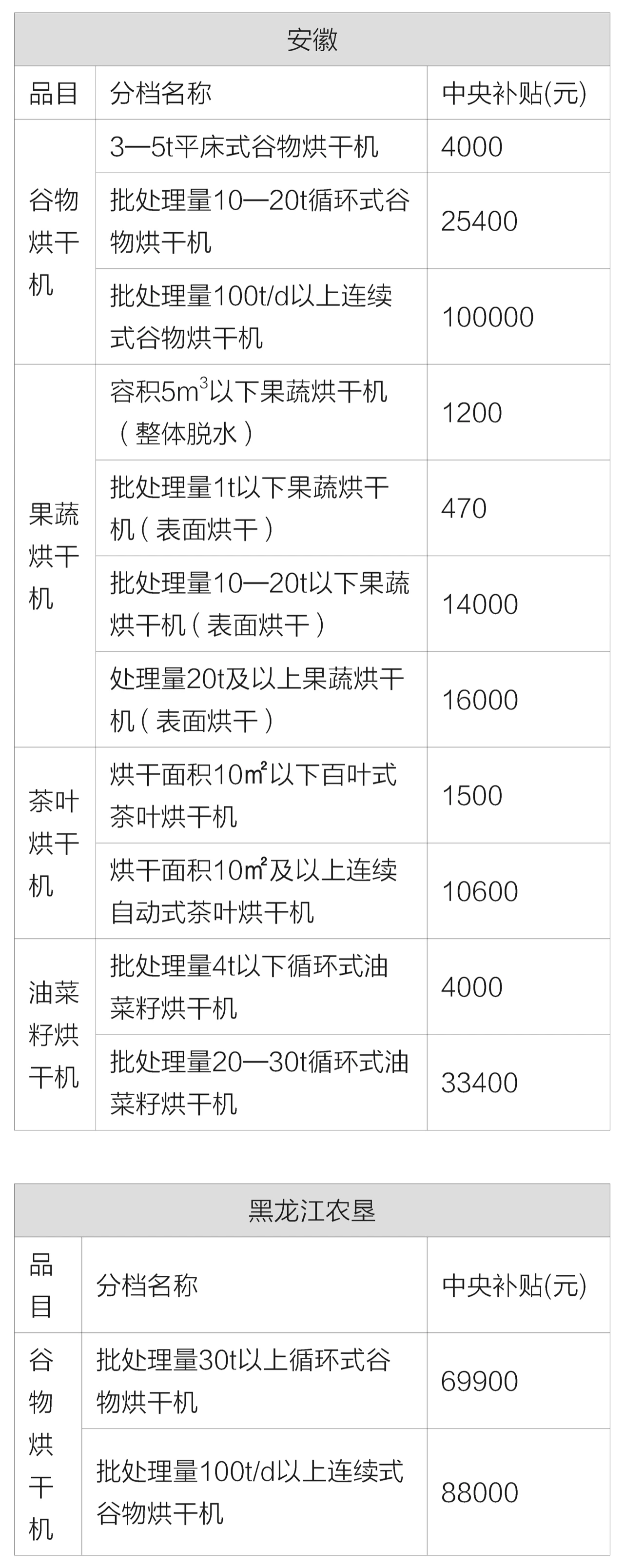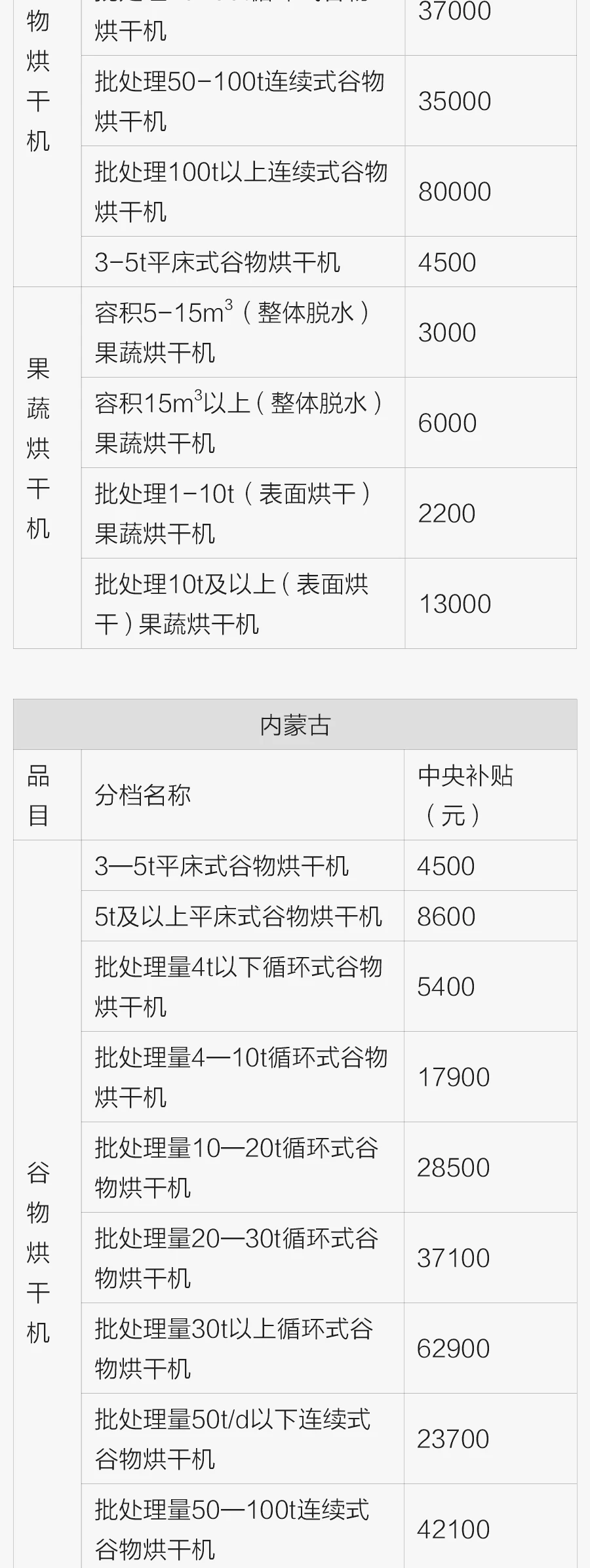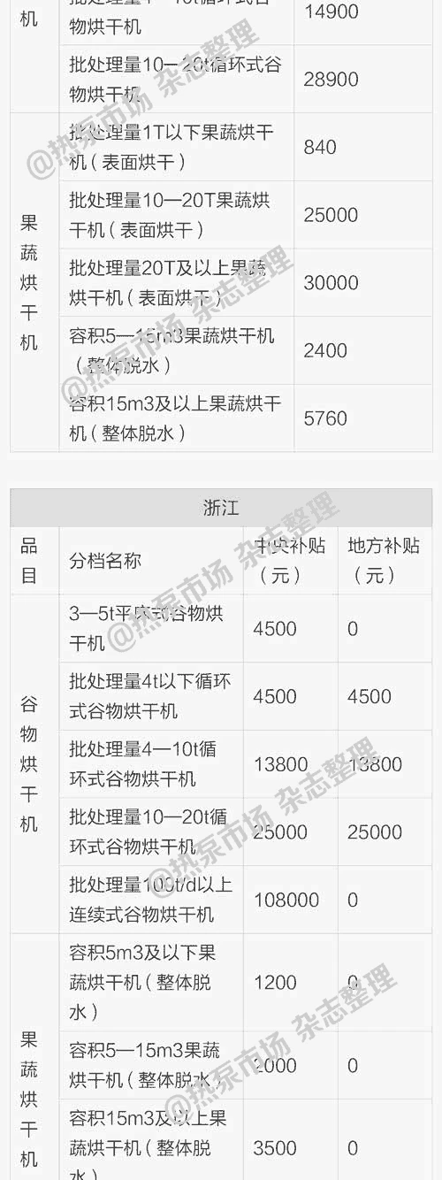 今天,我们来盘点一下陕西、湖北、浙江、上海、宁夏、青海、山东、山西、吉林、广西、湖南、江西、河北、内蒙古、天津、新疆、云南、安徽、黑龙江农垦的热泵烘干相关补贴政策。涉及到的机型包括谷物烘干机、果蔬烘干机、茶叶烘干机、油菜籽烘干机、非燃煤型热水加温系统、废弃物料烘干机等。