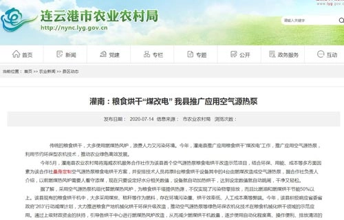 今年5月,灌南县农业农村局将海威农机服务合作社作为该县首个空气源热泵粮食电烘干改造示范项目,结合环保、用能、成本等多方面因素为该合作社量身定制空气源热泵粮食电烘干方案,并安排技术人员将原8台粮食烘干设备其中的4台由燃煤改造成空气源热泵,据合作社负责人介绍,以前燃煤热风炉需要人看守添煤,现在只要设定好水分相关数值,设备就自动加热烘干,达到设定数值就自动跳闸,干净又轻松。
