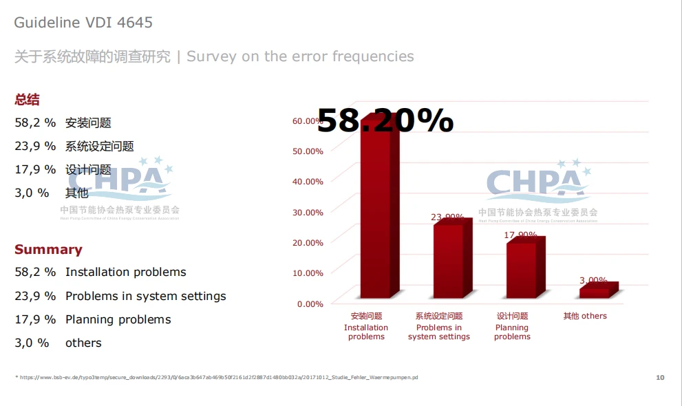 可以看到,最大的问题发生在安装环节,德国在安装设计环节相对比较严谨,58.2%的问题是出在这个环节。而中国则高达90%。