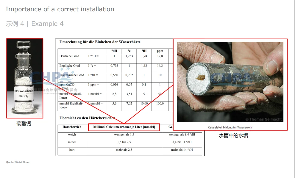 示例4,下图是德国本土的一张图,德国饮用水供水管一般用的是不锈钢的,德国水质非常硬,碳酸钙很高,用一段时间就会出现图中所示情况,中国北方水质也偏硬,也要注意水质的处理。
