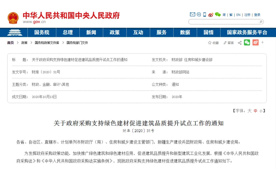 近日,财政部、住房和城乡建设部印发《关于政府采购支持绿色建材促进建筑品质提升试点工作的通知》,要求压实采购人落实政策的主体责任,通过加强采购需求管理等措施,切实提高绿色建筑和绿色建材在政府采购工程中的比重。