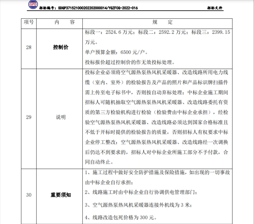 项目名称:阳谷县2022年度乡镇范围内煤改电项目二次招标
