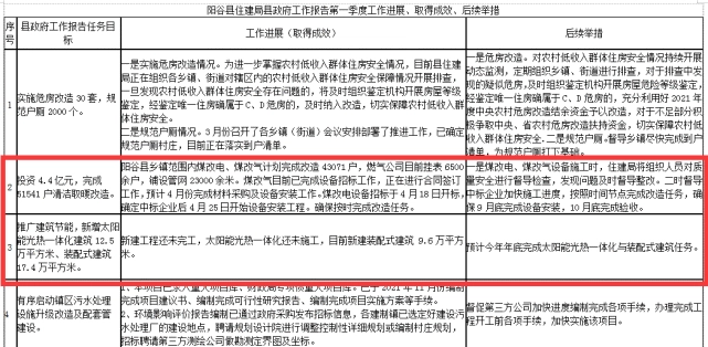 根据相关内容显示,2022年阳谷县预计投资4.4亿元,完成51541户清洁取暖改造。工作进展方面,该文指出,阳谷县第一季度乡镇范围内煤改电、煤改气计划完成改造43071户,燃气公司目前挂表6500余户,铺设管网23000余米。煤改气目前已完成设备招标工作,正在进行合同签订工作,预计4月份完成材料采购及设备安装工作。煤改电设备招标于4月18日开标,确定中标企业后4月25日开始设备安装工程。确保按时完成改造任务。后续,阳谷县一是煤改电、煤改气设备施工时,住建局将组织人员对质量安全进行督导检查,发现问题及时督导整改。二时督导中标企业加快施工进度,按照时间节点完成改造任务,确保9月底完成设备安装,10月底完成验收。
