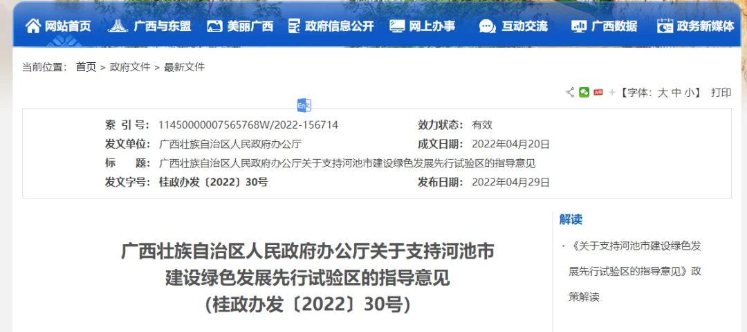 近日,广西壮族自治区人民政府发布《广西壮族自治区人民政府办公厅关于支持河池市建设绿色发展先行试验区的指导意见》,意见中提到:大力发展绿色低碳建筑。深入开展绿色建筑创建行动,建立公共建筑用能监控系统定额管理制度。加快推行绿色建筑和建筑节能节水标准,推广使用绿色建材、装配式建筑、被动式低能耗建筑、建筑捕风技术、节能照明等。以宜州新区建设为契机,加强低碳建筑设计管理,出台新区建筑技术与艺术设计导则,以制度形式规范建筑风格。推进光储直柔建筑试点建设,大力推广太阳能集中供热、屋面光伏、空气源热泵等可再生能源技术在城市建筑中的应用。到2025年,河池市新建建筑按绿色建筑标准设计建造的比例达到100%,装配式建筑占新建建筑面积的比例达到15%以上。(责任单位:自治区住房城乡建设厅、发展改革委、生态环境厅,河池市人民政府)